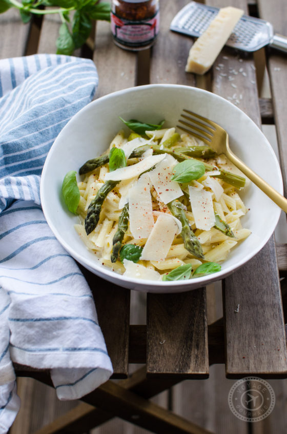 Voici une recette simple et de saison de pâtes aux asperges, aux inspirations italiennes, pour égayer vos retours du marché !